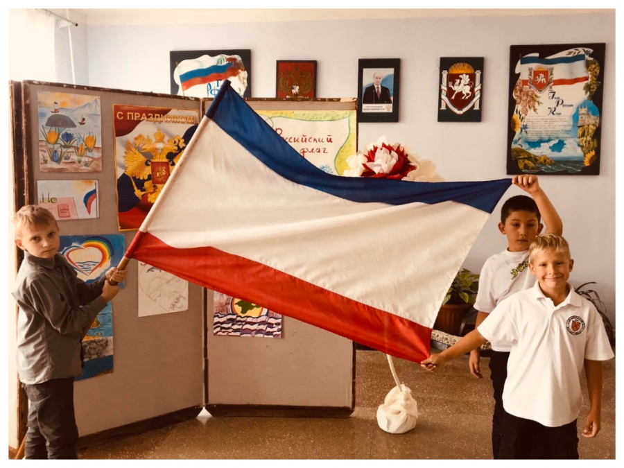 Традиционно в этот день в нашей школе проводятся познавательные мероприятия. В школьной библиотеке организована выставка печатных изданий, организована выставка рисунков, проведены единые уроки и беседы с учащимися «Государственные символы Республики Крым». Республики Крым – это символ нашего долго пути, как того, что мы уже прошли, так и того, что предстоит пройти нашим потомкам. В гербе и флаге полуострова запечатлены те важные вехи истории нашей земли, которые должен знать каждый крымчанин. Сегодня в День Государственного герба и флага Республики Крым мы вспоминаем значение нашей символики для каждого из жителей республики.